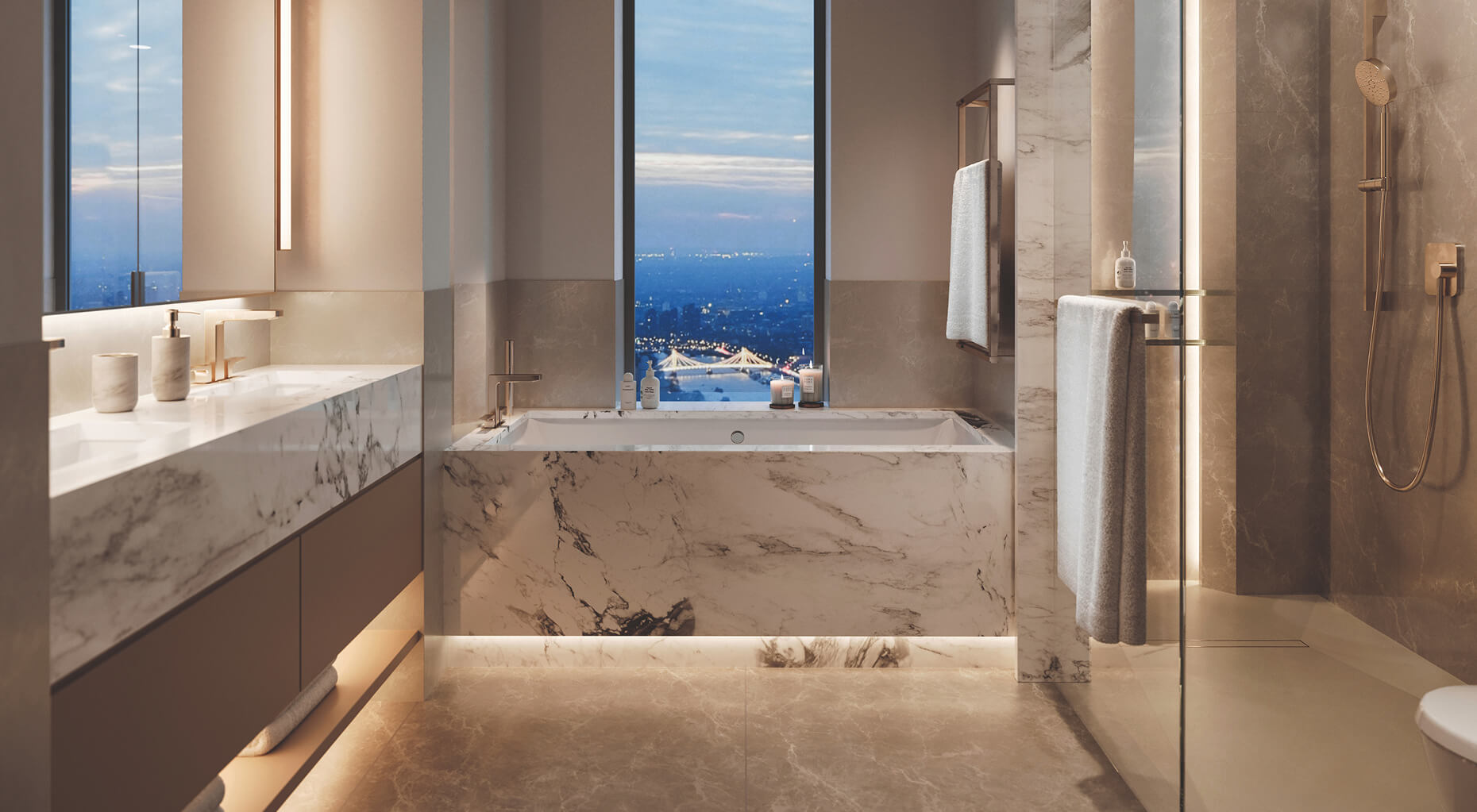 Discover breathtaking panoramic views from every residence. The Thames, Big Ben, Houses of Parliament and London Eye create an unparalleled backdrop to daily life. Occupying floors 20-41, these elevated residences offer extraordinary perspectives across London's most iconic landmarks.